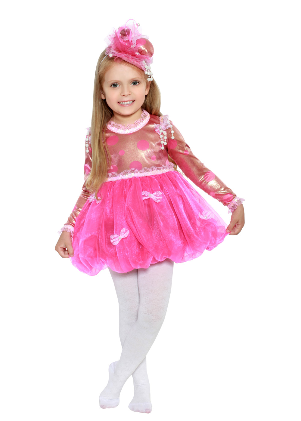 Да это же Бусинка! Забавный, веселый и озорной образ для ярких и непосредственных детей. Костюм Бусинка состоит из розового нежного платья с причудливой шляпкой. Нежное платье порадует маленьких девочек и подарит радость родителям, так как их маленькая принцесска будет самой уникальной и прекрасной на любом празднике. Кажется, это празднование запомнится всем!