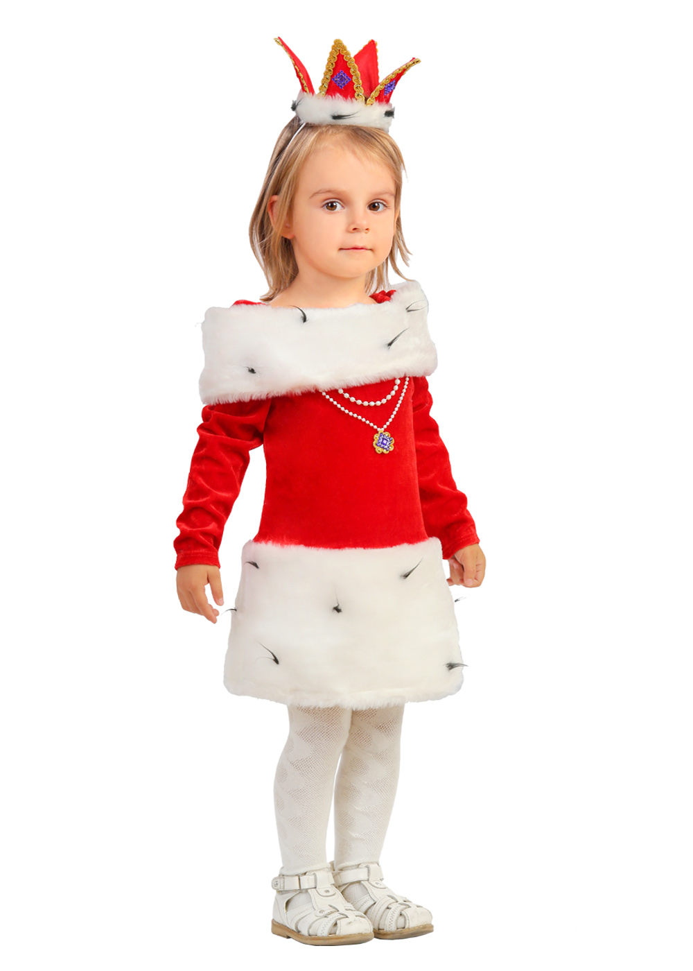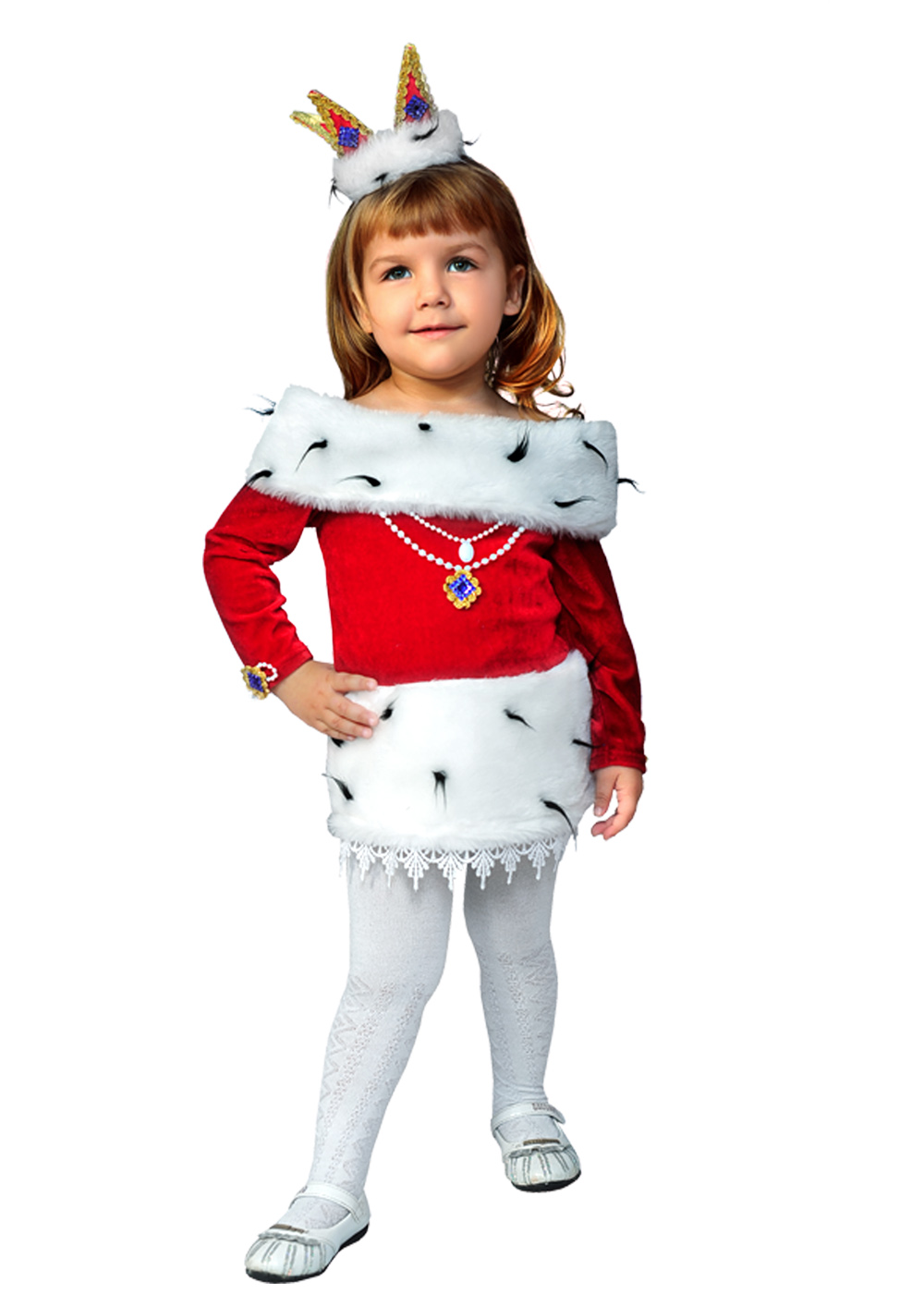 Да это же Маленькая Королева! Забавный, веселый и озорной образ для ярких и непосредственных детей. Костюм Королева для самых маленьких девочек. Стилизованная платье красно-белых цветов создает образ маленькой дерзкой королевы, которая также может полазить по деревьям и подразнить кота. Однако оригинальная корона украшения «выдают» в ней настоящую Королеву. Кажется, это празднование запомнится всем!