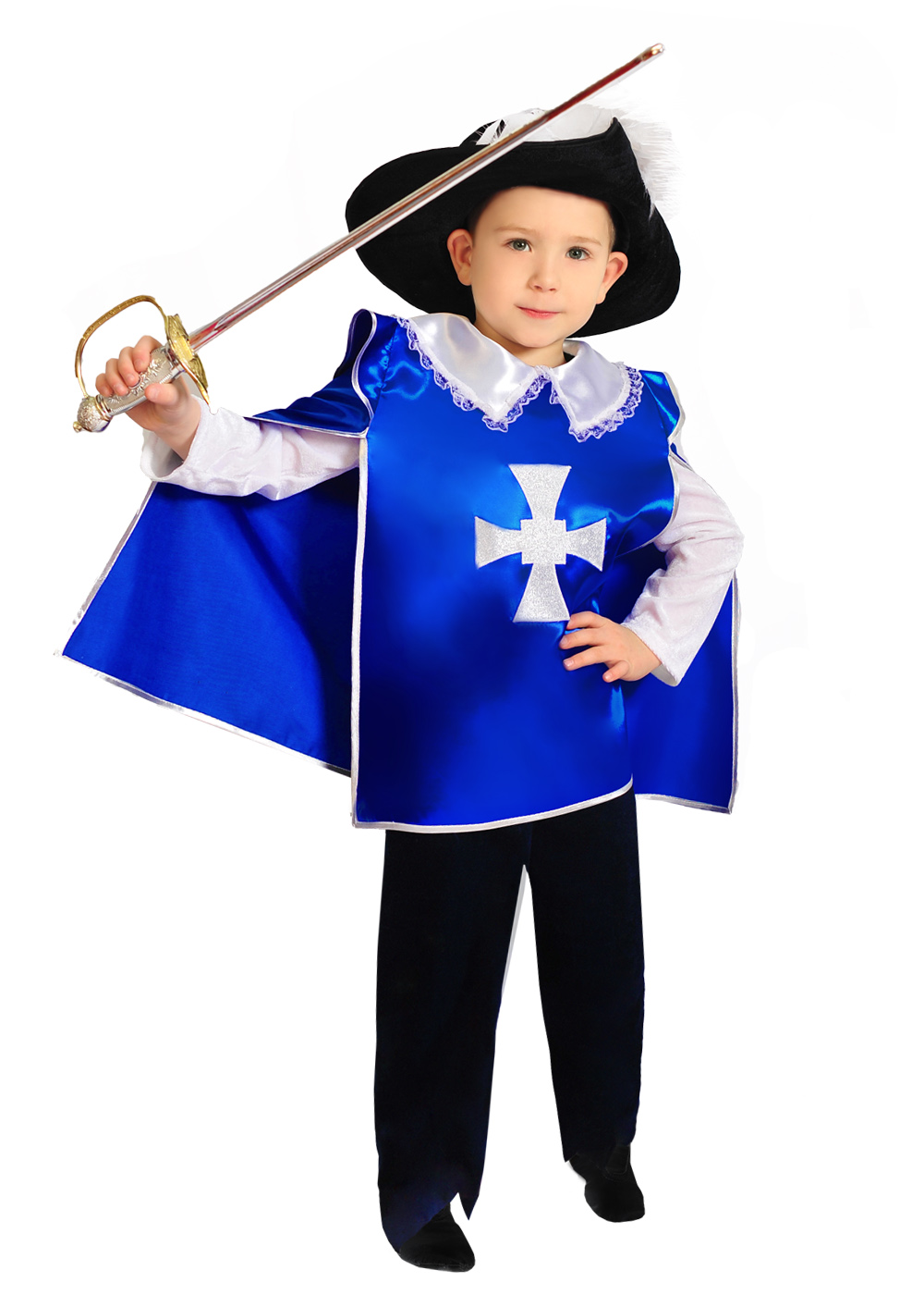 Подарит незабываемый праздник Вашему ребенку костюм Мушкетёра. Забавный наряд для всех желающих создает веселый образ. Все материалы для изготовления детского наряда прошли санитарный и экологический контроль. Высокое качество пошива позволит наряду прослужить долгое время.