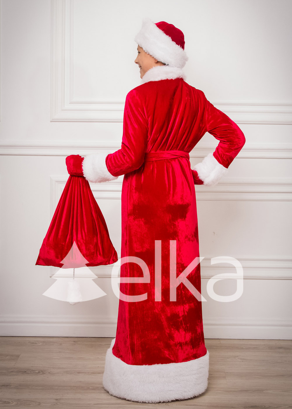•    В комплекте: шубка с поясом, шапочка, рукавички, мешок.