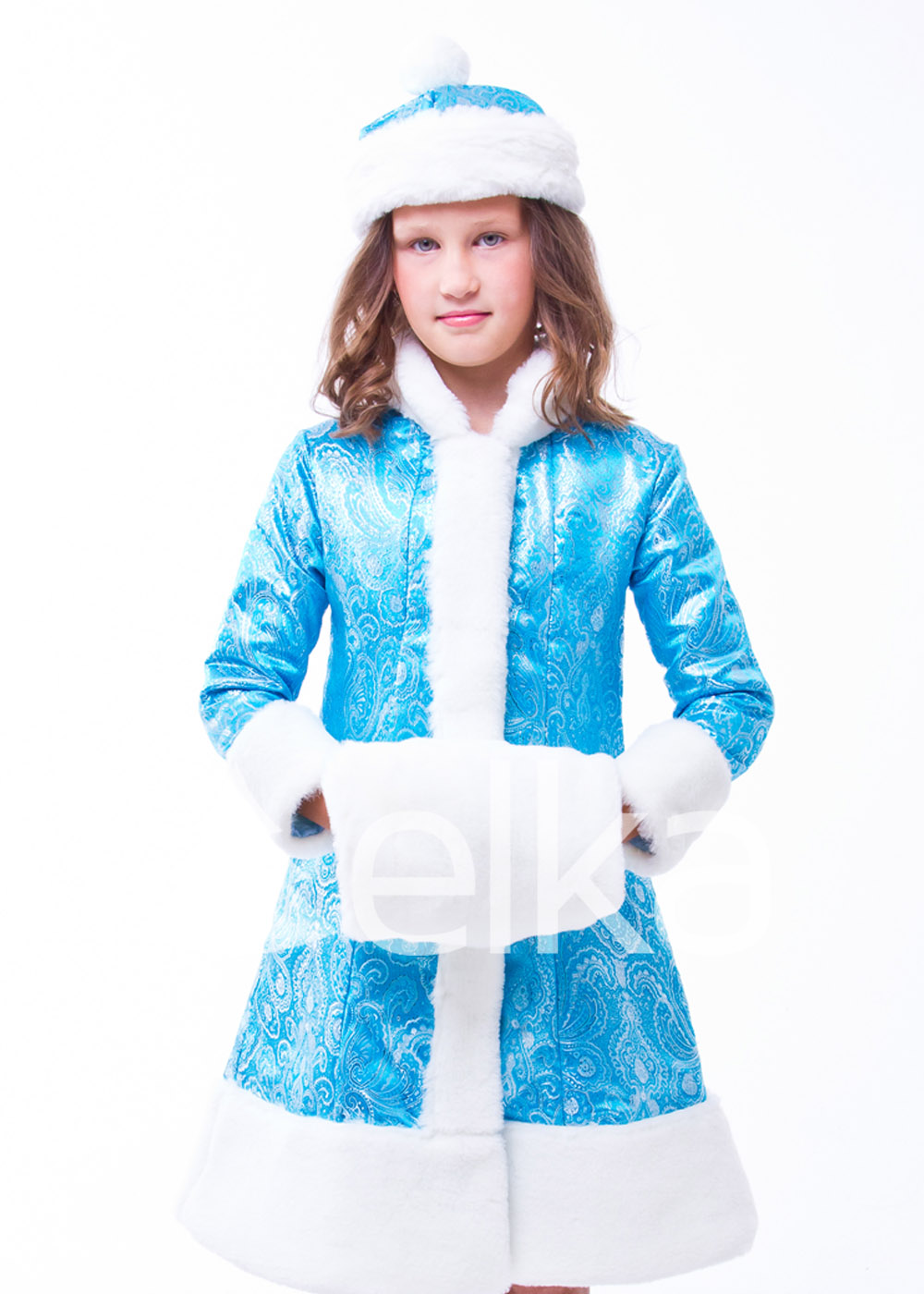 Подарит незабываемый праздник Вашему ребенку костюм Снегурочки «Скай Кид». Нарядная шубка из расписанной серебристыми рисунками парчи оторочена белым мехом. Шапочка с помпоном и муфточка завершают создание неповторимого сказочного образа.