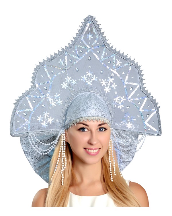 Оригинальный  серебрянный кокошник, подойдет к любому костюму.