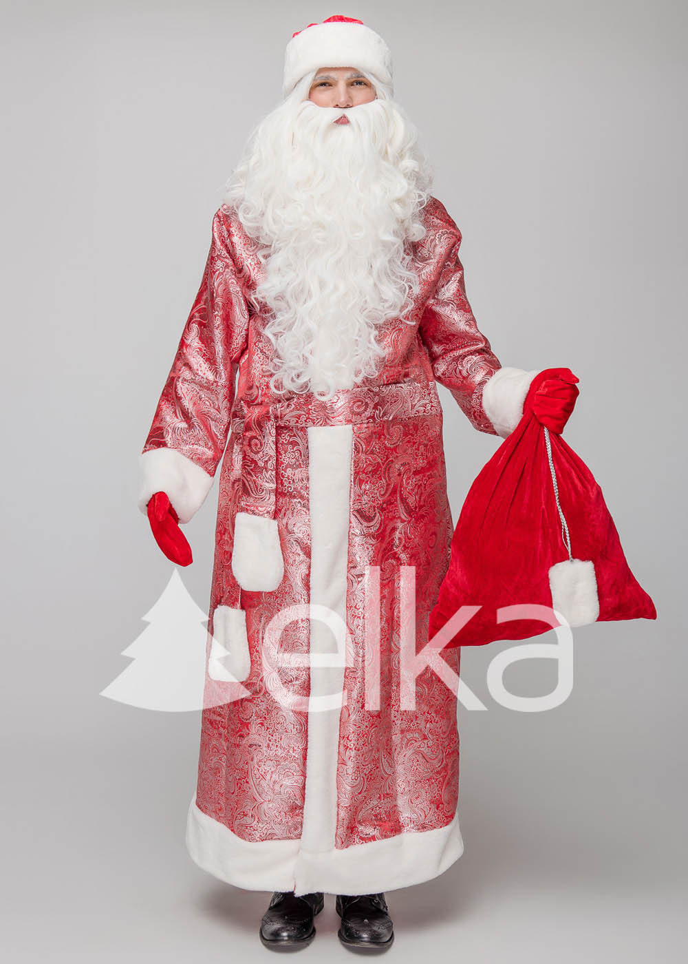 Комплектация: Халат с поясом, шапка, мешок 60 см * 48 см. Борода и парик, посох и костюм Снежной Авроры можно купить отдельно на сайте elka.