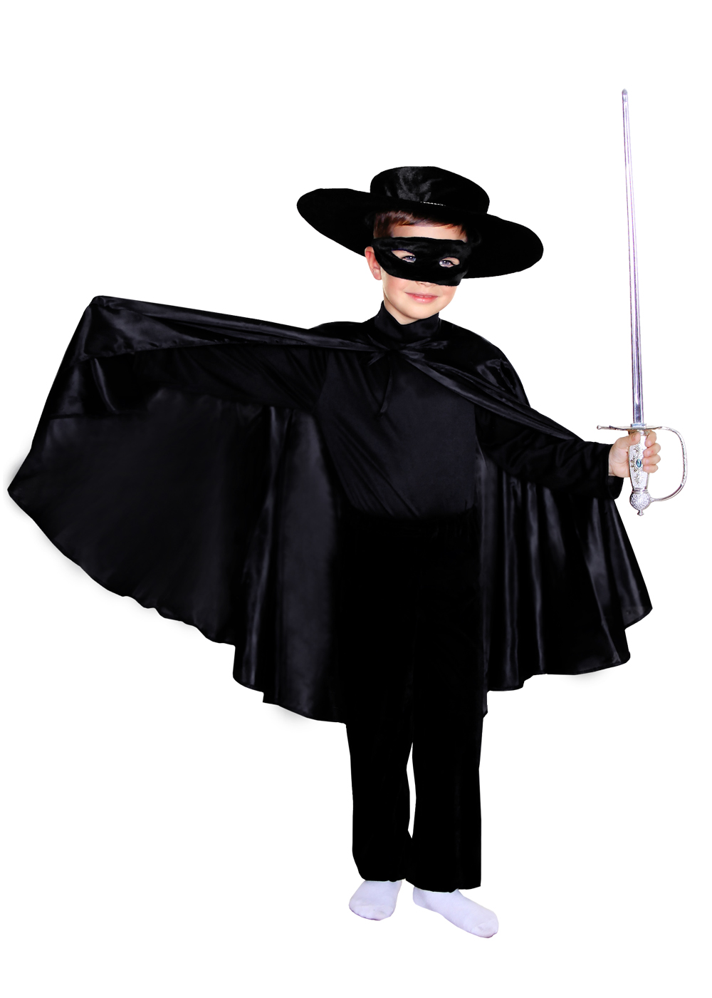 Да это же Зорро! Забавный, веселый и озорной образ для ярких и непосредственных детей. Мальчики очень часто на праздники выбирают карнавальные костюмы любимых героев. Сеньор Зорро один из фаворитов вымышленных персонажей. Зорро отважный герой приходит на помощь бедным, когда приходит беда. Карнавальный костюм Зорро – это непременно черный костюм с широкополой шляпой и маской на глаза. Зорро всегда оставляет отличительный знак – Z, чтобы все знали о доблестном герое! Кажется, это празднование запомнится всем!